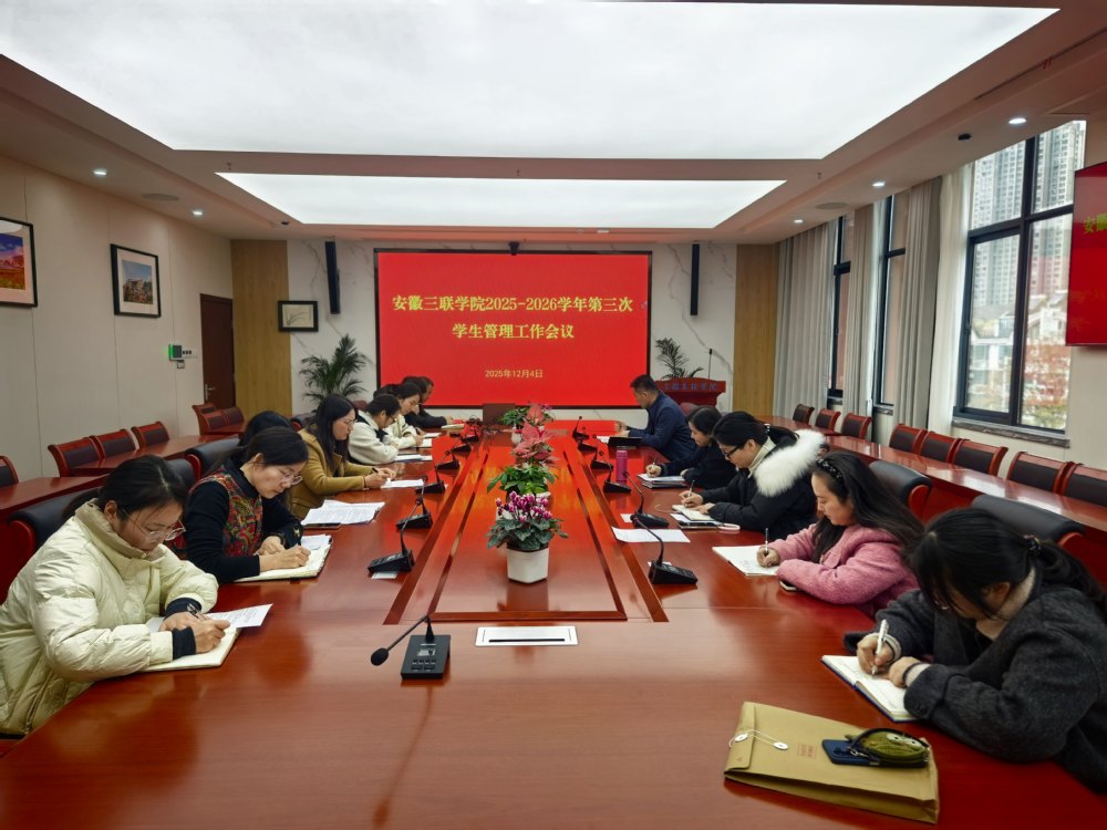 为进一步深化“一站式”学生社区建设,12月4日,学校在图书馆518会议室召开2025-2026学年第三次学生管理工作会议。副校长蔡文芬、各院部学管主任及学生处相关人员参加会议。