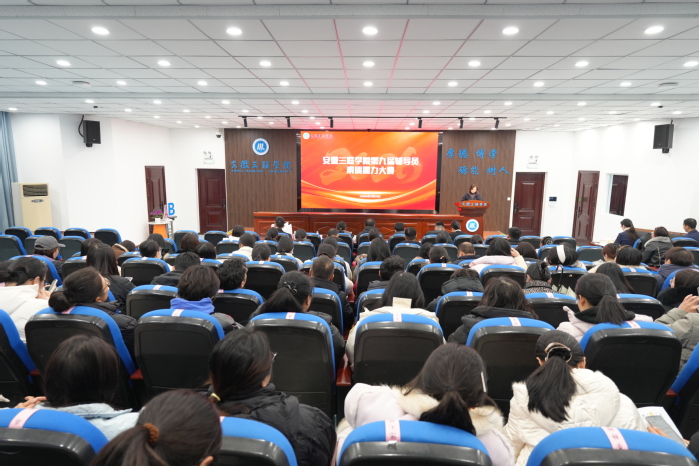 1月19日,安徽三联学院第九届辅导员素质能力大赛决赛在B01学术报告厅举行。副校长蔡文芬为大赛致辞。赛事特邀请省内高校的学工领域专家与校内相关部门负责人共同担任评委,各院部学管主任与全体辅导员现场观摩,共话育人之道。