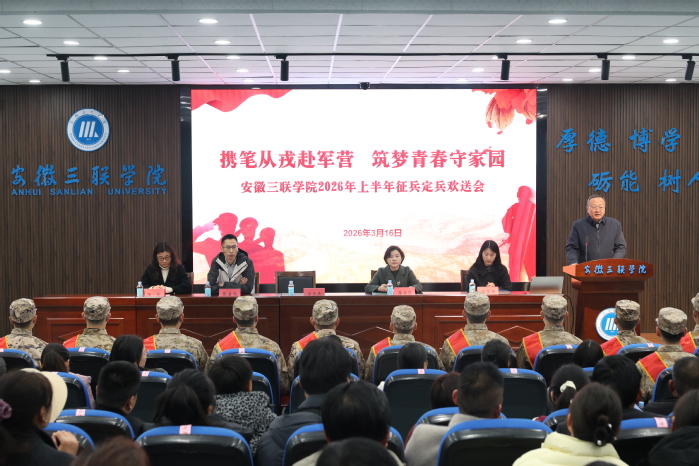 3月16日,学校2026年上半年入伍学生欢送会在B01学术报告厅举行。省教育督导专员、校党委书记王光虎出席并讲话。副校长蔡文芬主持欢送会。